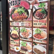 今、流行の肉バルでステーキやハンバーグなどのランチメニューが並んでいます。