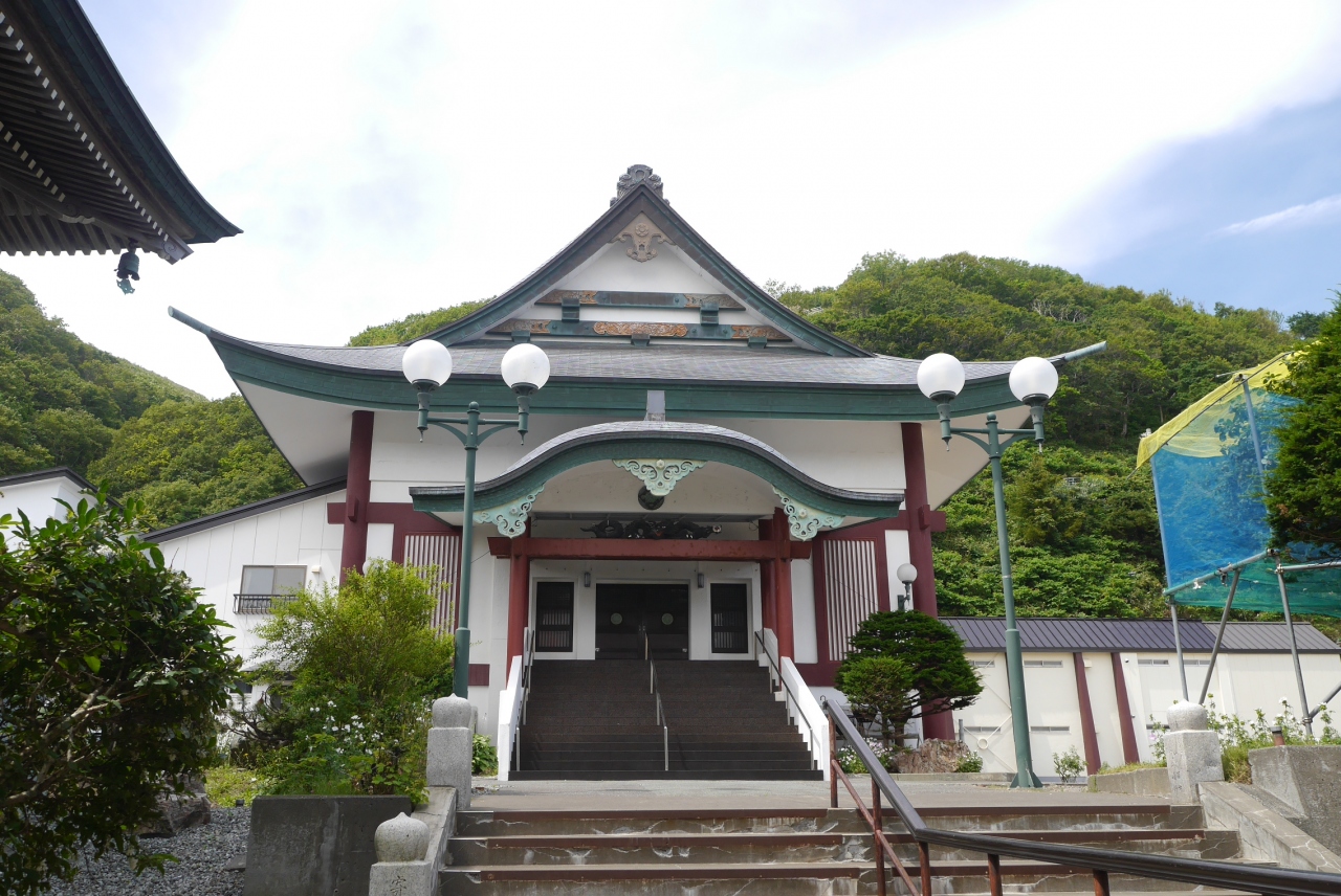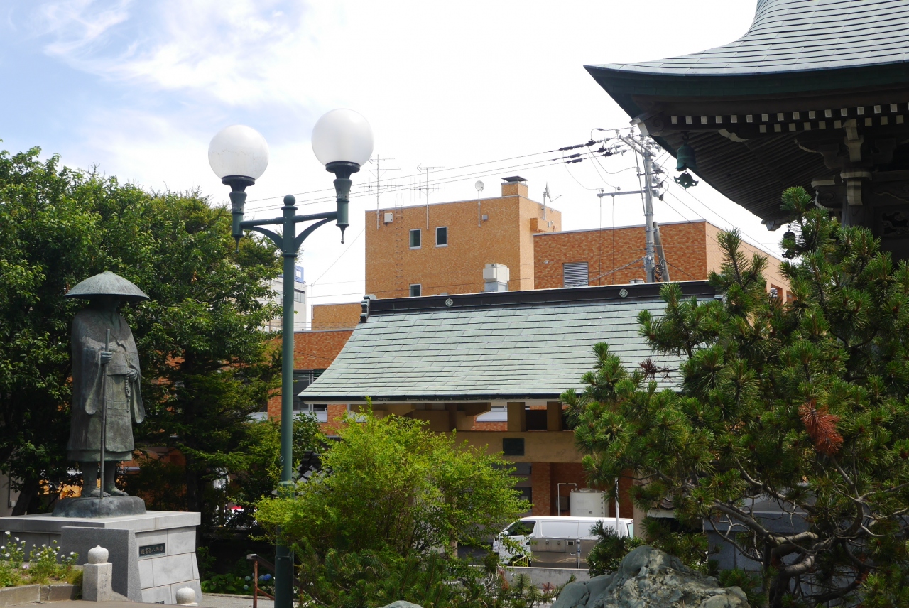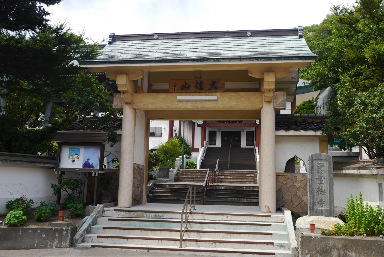 稚内北門神社から丘沿いの道を歩くとすぐ山門があり、山門を入った所に親鸞聖人の大きな像が置かれている真宗大谷派のお寺です。