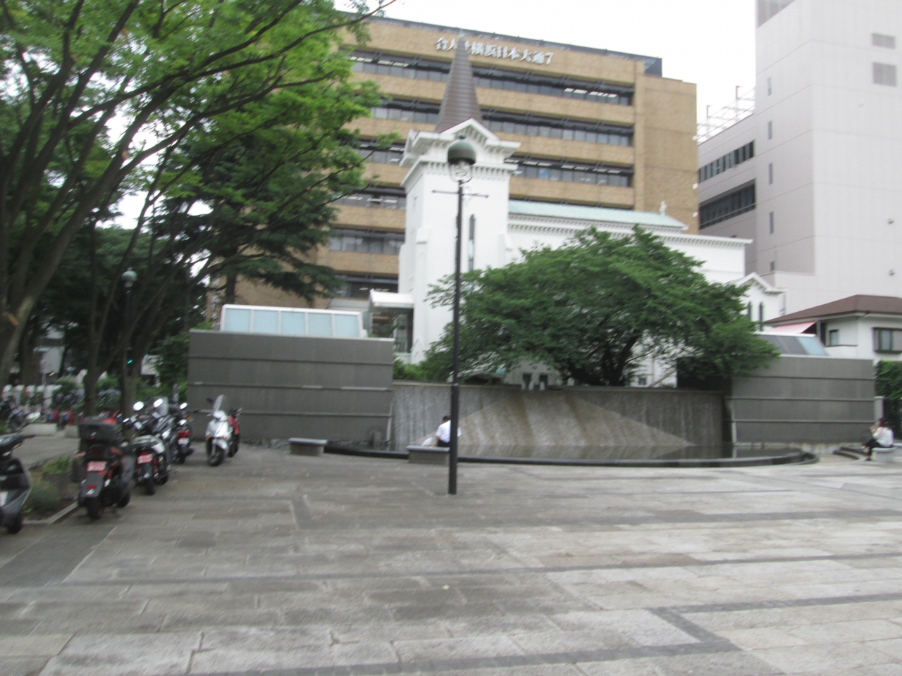 広場の中央部の噴水を取り囲むようにベンチやオブジェが設置されています。なかでも、噴水の周囲に円形に設置されたシルバーのオブジェは表面が鏡面に仕上げられており、周囲の景色や建物を映しているところが特徴的です。珍しい公園だと思います。