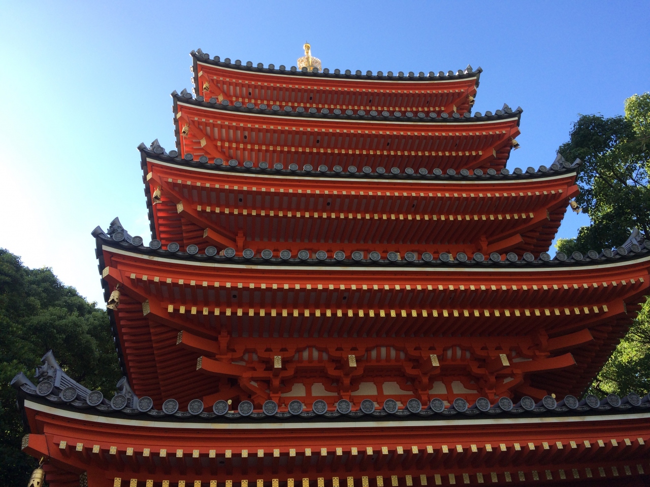 「東長寺は五重塔と、大きな木造の仏像が有名、あと地獄めぐり」と聞き、