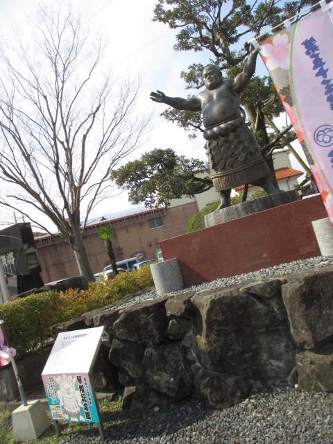 琴桜はおそらく地元の大スターなのでしょう。大通りに面した広場に建っており、それほど大きくないのです。実物より若干小さいです。ただ、とても造りがリアルで、お腹のふくらみ具合や手の開き具合など、とても精巧です。年配の男性はとても喜んでいました。