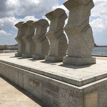 神戸のメリケンパークの南側にある、不思議な5体の銅像。まるでイースター島のモアイ像のような姿です。これは坂本龍馬が設立した海援隊のモニュメントという事ですが、どこをどう見れば海援隊に繋がるのか、正直よくわかりません。ただ、メリケンパークを歩いていれば間違いなく気になる碑だと思います。