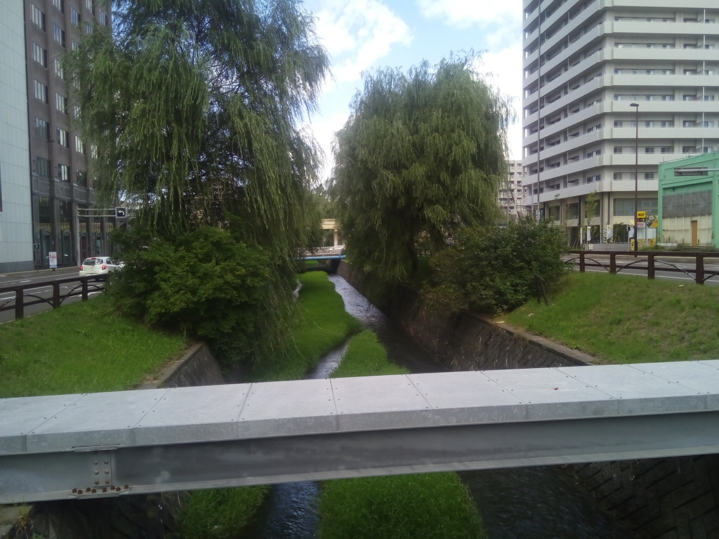 広い道路の反面、創成川は意外や川幅は狭く小さな川でした。見応えはあまり感じませんでした。