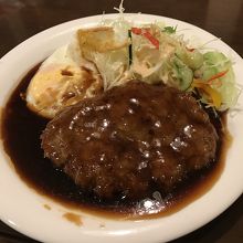 どうやらガッツリ系のお店のようです。ライスを普通盛りで頼んだら皿にこんもり山で来ました。ハンバーグも250gがデフォ(レディースは180g)ハンバーグは食感が練り物のようで、タレも甘辛くて好みではありませんでした・・・喫煙OKなので注意。