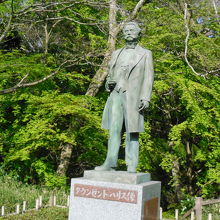 佐倉城址公園の本丸跡と大手門の間にあり、堀田正睦の銅像と散策路を挟む形で立っています。何で城址公園に外国人の銅像があるのかとふと不思議に思いましたが、幕末の開国期に幕府の要人であった堀田正睦と相対した米国側代表がこのハリスでした。堀田正睦像と同じ遠くの方向を見る形で設置されています。