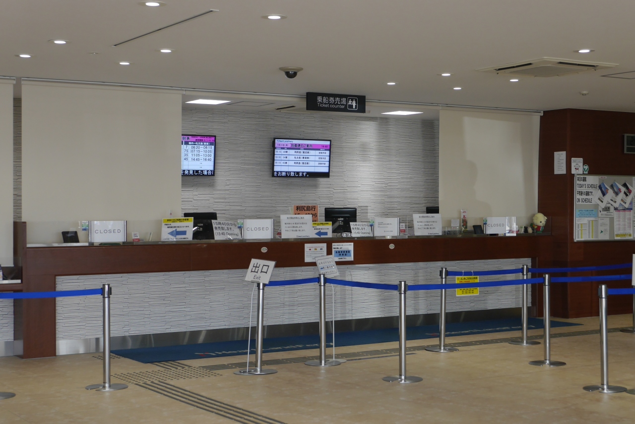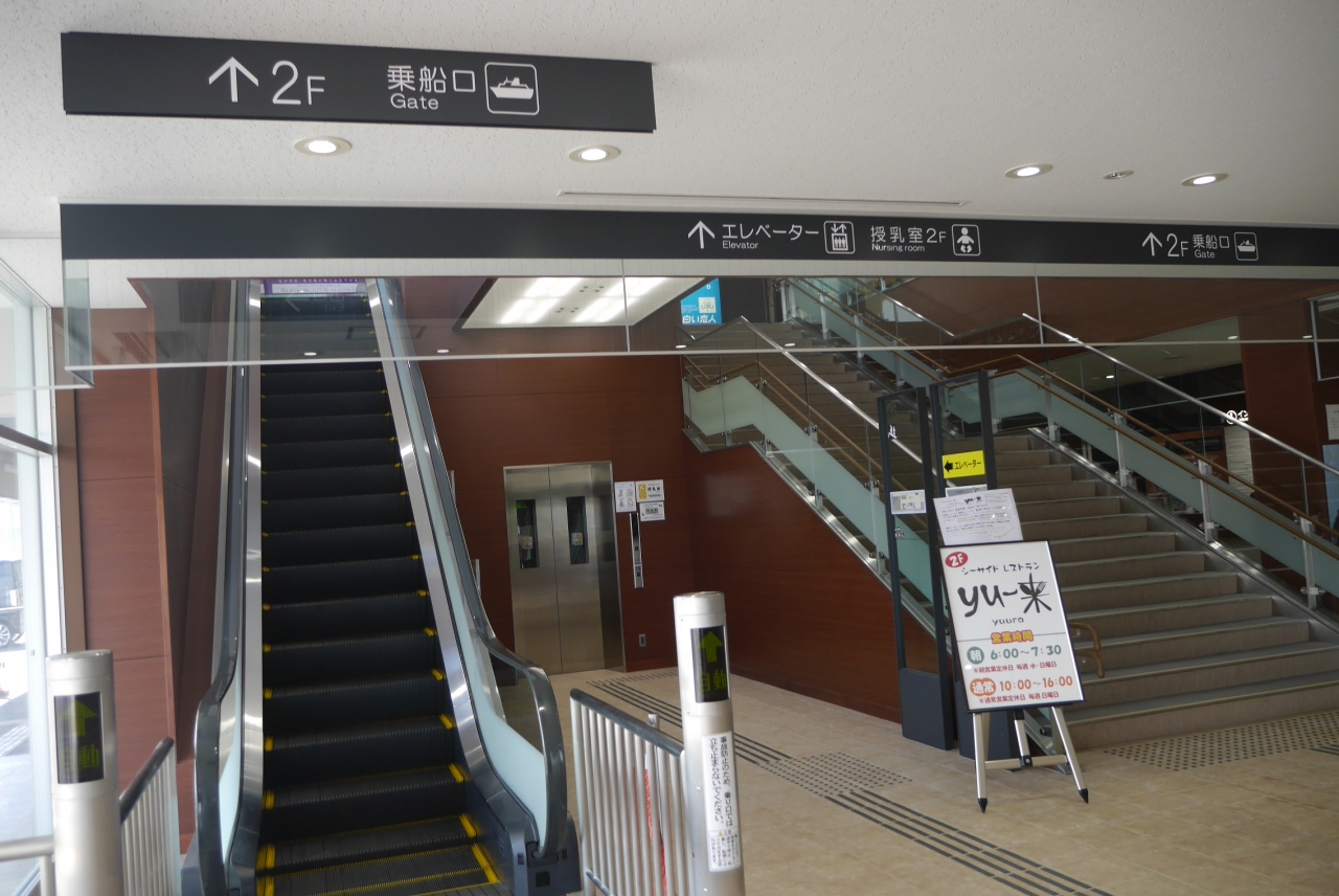 朝早い時間に出るフェリーに合わせ、ターミナル内の売店も朝早くから店を開け、夕方には店じまいしています。乗船券発売所も昼中は出発便が無いので15:40まで閉まっています。