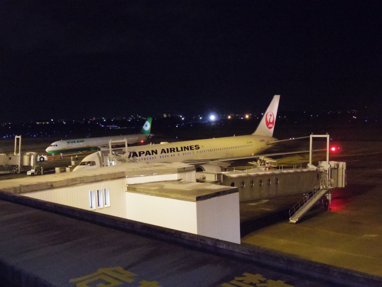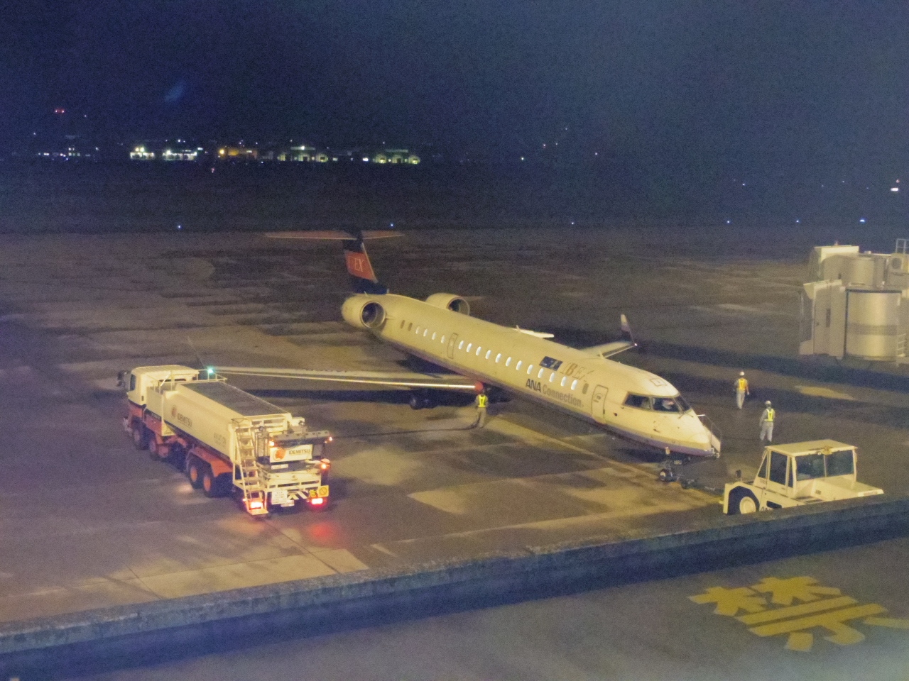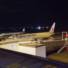 日没後ということで、当然ながら見えるのはライトに照らされた飛行機で、周囲の景色が見えない分、旅立ちのドラマにスポットが当たっているようで、ロマンチックでした。