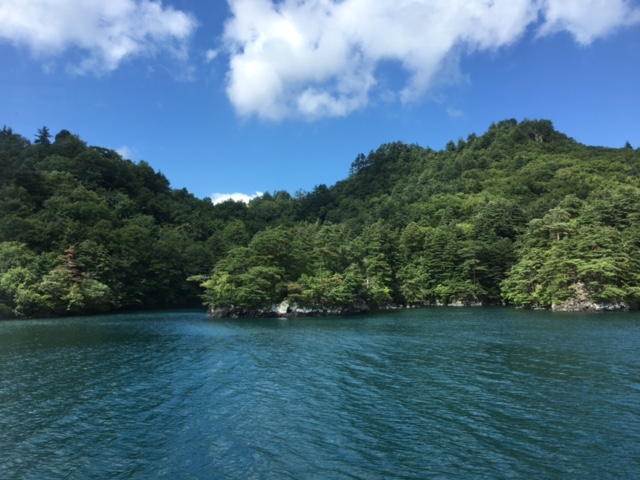 紅葉には早い9月初旬は、緑が濃くて綺麗で水は透き通っていて、絵画のように美しい湖畔を見ることができました。
