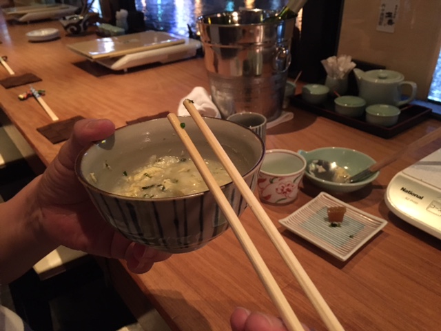 博多には数多くの「鶏の水炊き」屋さんがあって、正直迷いましたが、色々調べた所こちらが値段も手頃で、かつ、カウンター席からは那珂川の綺麗な夜景が見られます。