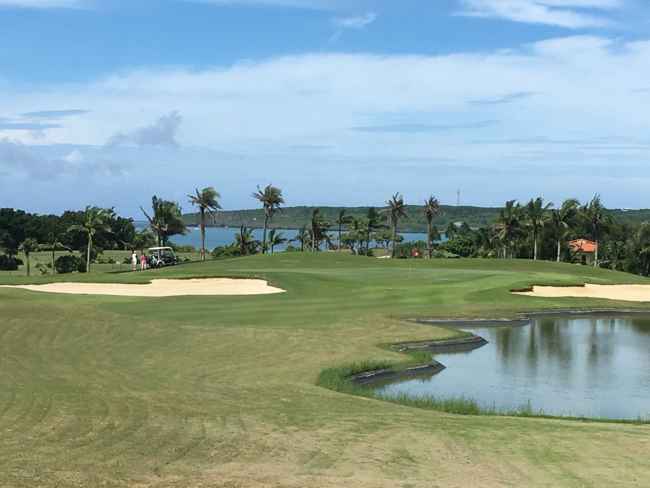 シーサイドのリゾート感一杯のゴルフコースです。一つのゴルフバッグに二人分のクラブを詰め込んできましたが、空っぽのバッグを用意してくれて、心遣いを感じました。