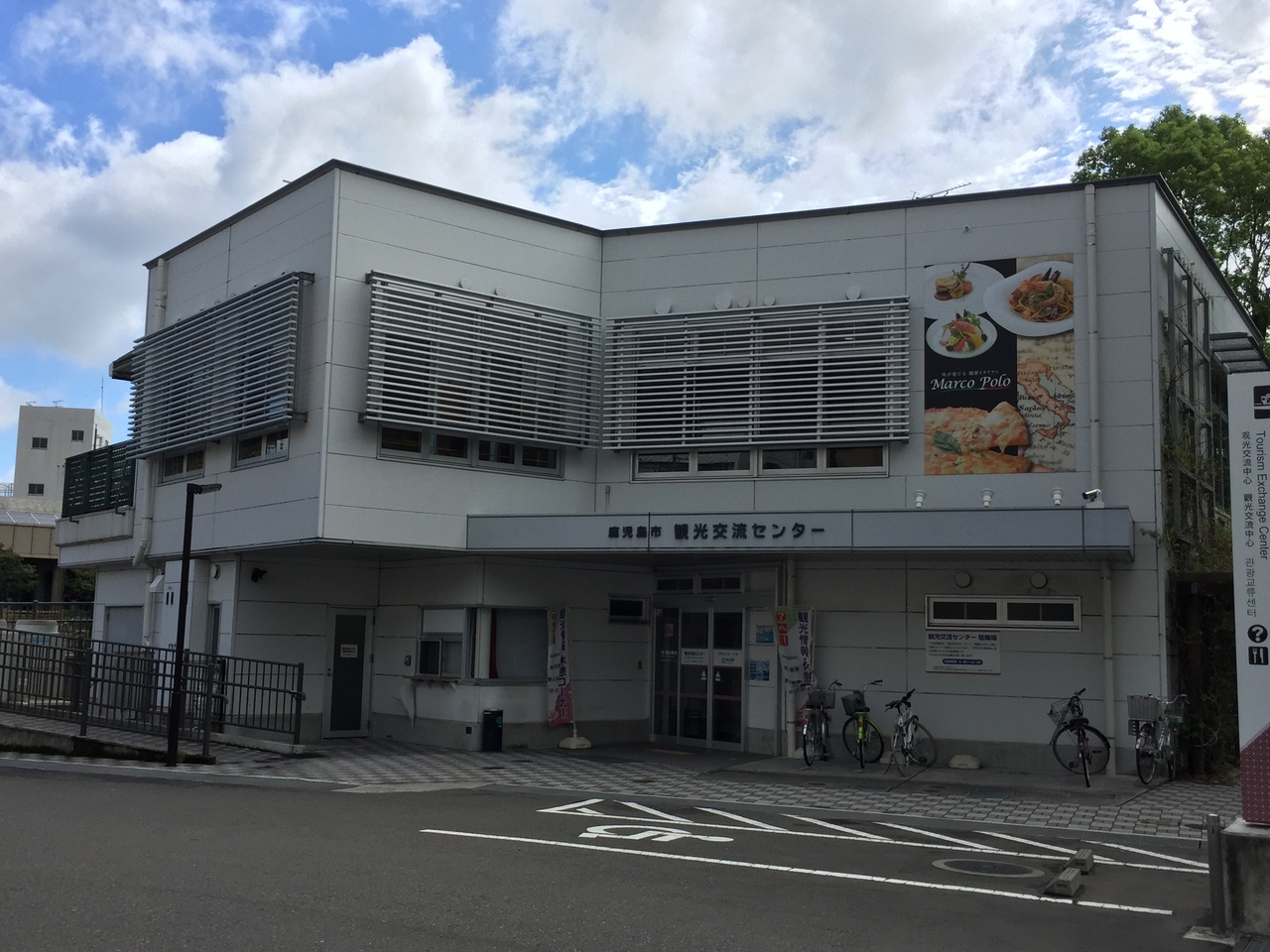 鹿児島中央駅からナポリ通りを歩いて五分。バスターミナルからも同様で、川沿いにある。一階は観光案内所で、一日乗車券などの各種交通機関のお得な切符が買える。二階はマルコポーロというイタリアンレストラン、川を挟んで維新ふるさと館というロケーション。マイカー利用者はここに駐車してバスや市電で観光することもできる。
