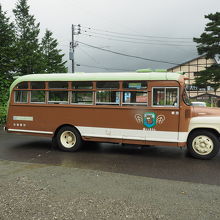 レトロなボンネットバスを利用して、てんぷら油で動くというエコが売りの観光用バスです。