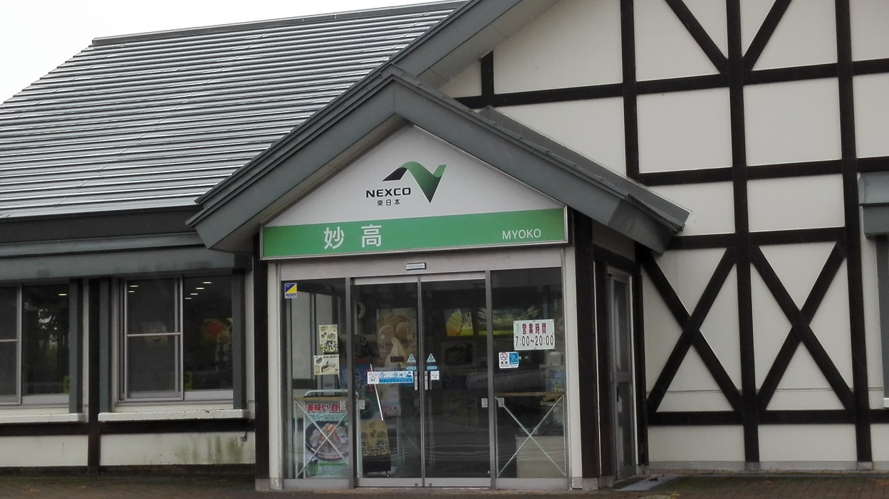 新潟から長野へ。上信越自動車道の下りを利用しました。高原って感じのロッジ風のおしゃれな建物が印象的でした。でも、やや小さめで建物内で買い物は目立ったものなし、です。雨降りの為、景色が見られなかったのが残念。ここを過ぎると小布施SAがあったので、小布施で休憩した方がよかったかも、と思いました。