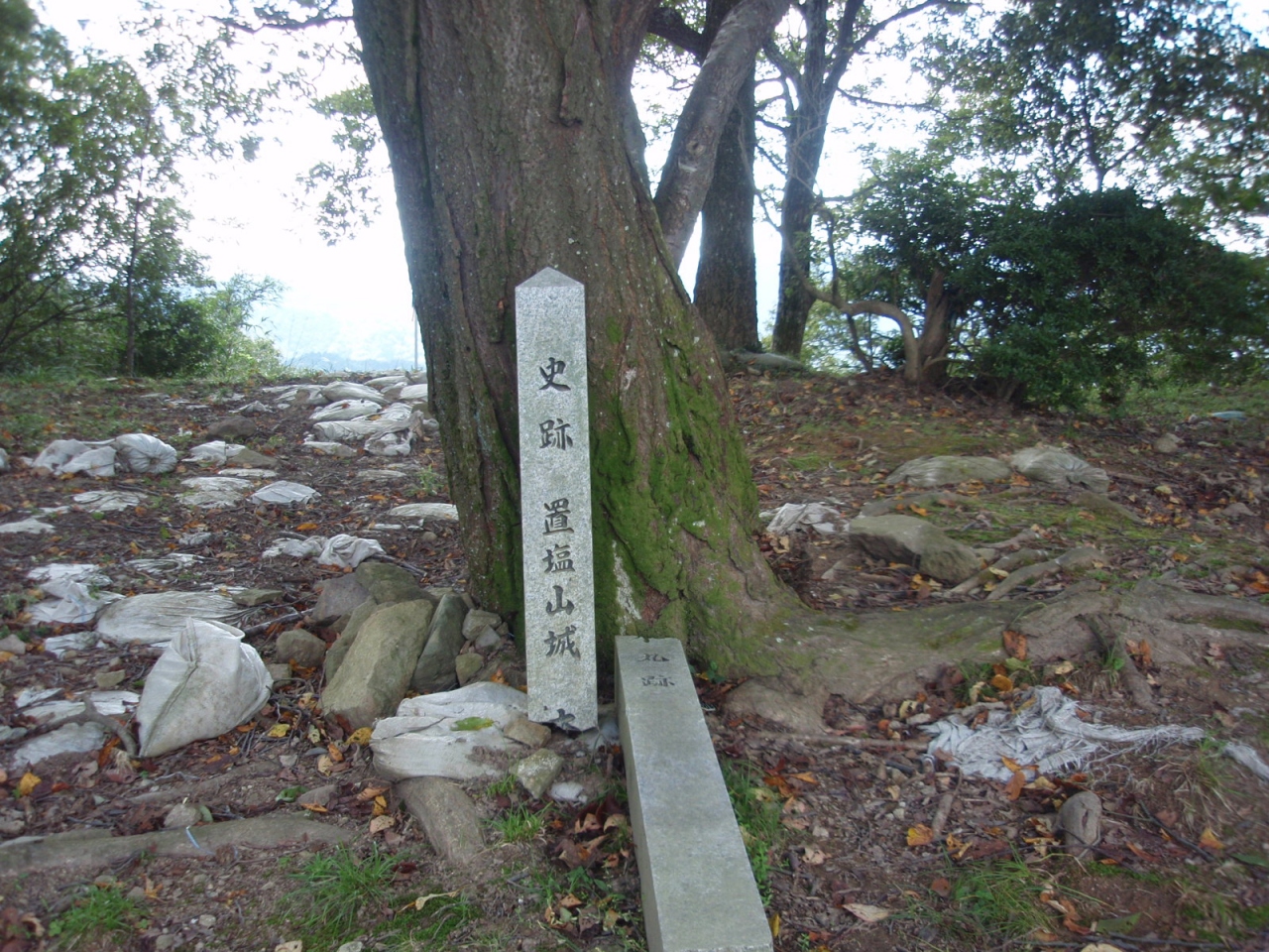宮置バス停から歩き始め15分で登山口に到着。炭焼き窯(昭和初期まで使用されていた)、台所跡、三の丸跡、二の丸跡、大石垣等を見ながら、九十九折れの急な登山道を登る。登り始めて1時間15分城山山頂(置塩城本丸跡)(380M)に到着。展望は開け絶景である。北には明神山等の連山、南には瀬戸内海、家島が見えます。昼食後ほぼ来た道を戻るバス停に向かう。山登りというより、山城探訪として興味あるコースでした