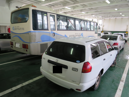 桜島港フェリーターミナルでは、徒歩でフェリーに乗船する場合と、車で乗り込む場合は入口が違うので、ご注意を。フェリーは3階建てほどの高さがあり、徒歩で乗船する場合は上へ上がって通路を通って船に乗り込みます。意外と時間がかかるので、出航時間には余裕を持って行ったほうがよいと思います。