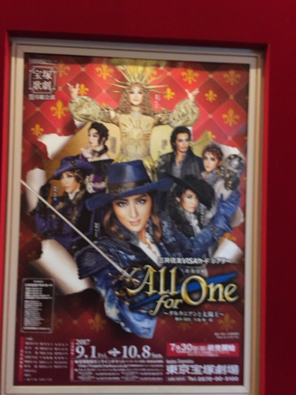 月組の『All for one』を観劇のために東京宝塚劇場へ、今は 宝塚劇場の前が工事中で通りにくいですね。三銃士をもとに描かれた物語で、アクションあり、お笑いあり、涙のシーンもあり 見応えのある素晴らしい舞台でした。今日も満席でした。