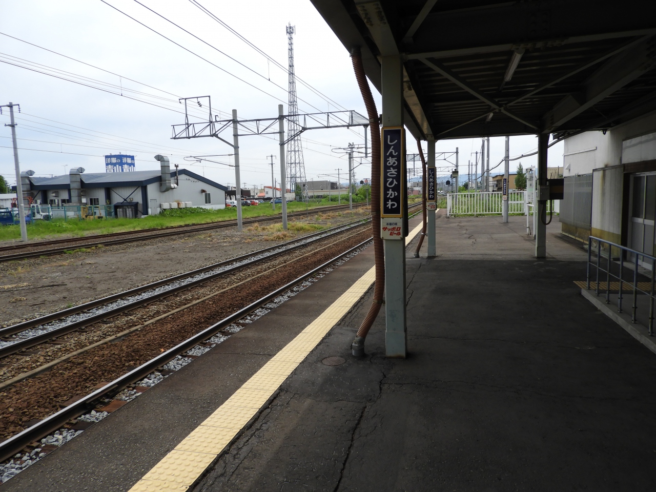 旭川からJR宗谷線の各駅停車列車に乗ると2番目に停車する駅です。ここまでは路線は複線となっていますが、ここから先の宗谷本線も石北本線も単線となるので、この駅が日本最北の複線駅となります。この駅より北の宗谷本線には分岐する路線がないので、日本最北の分岐駅でもあります。