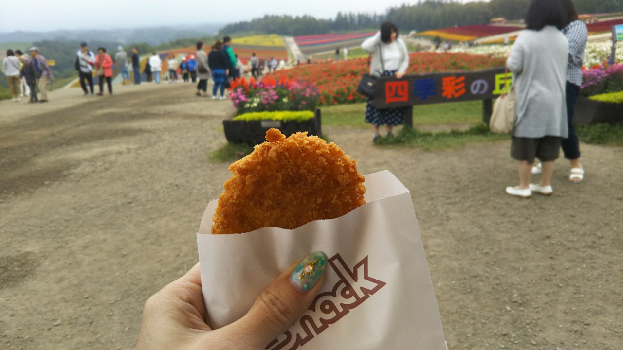 北海道で観光スポットのお土産物屋さんに行くと、どこにもソフトクリームとコロッケがありますよね。ここのその一つです。ツアーガイドさんが、ここのコロッケが美味しいと言っていたので買って食べてみることに。購入したコロッケは、既に冷めていてぬるいかんじ。じゃがいもは甘いんですが特にごく普通のコロッケで、そんなに美味しくなかったです。。。