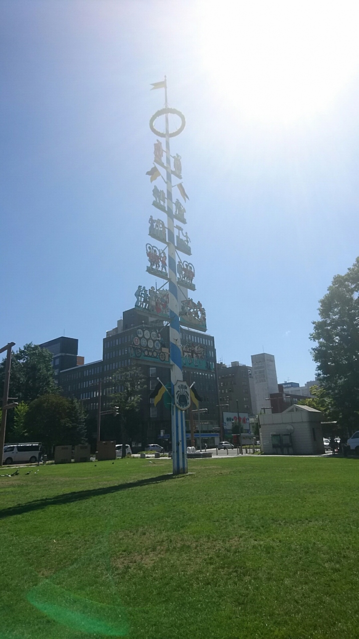 大通公園で祭りの木のようなものを見つけました。何だか公園に合わない感じだったので調べてみると、「マイバウム」と呼ばれるドイツの祭木でミュンヘンからの贈り物ということでした。老朽化に伴い2001年に作り替えられたようですが、そろそろ古さが目立ってきていました。