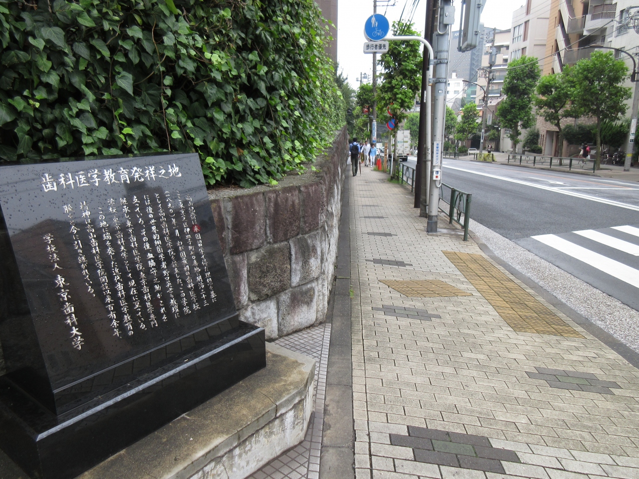 白金高輪駅から徒歩6分、桜田通りから魚籃坂を上がったところにある伊皿子交差点にある立派な石碑です。1890年に最初の歯科医学校として高山歯科医学院が設立されその後歯科医学院の流れが続き東京歯科大学に至っています。江戸後期から明治に様々な医学が日本に入ってきました。各医療の発祥の地や大学発祥の地を巡るのもおもしろいです。