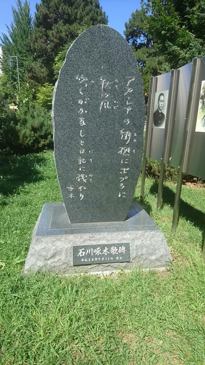 偕楽園緑地にはかつての雰囲気は残されていませんが、ただの公園ではないということは、石川啄木の歌碑があることでわかります。一握の砂にも載せられている、「アカシアのなみきに ポプラに 秋の風 吹くが かなしと 日記(にき)に 残れり」という句が刻まれており、かつての偕楽園の姿と啄木の姿が重なりました。