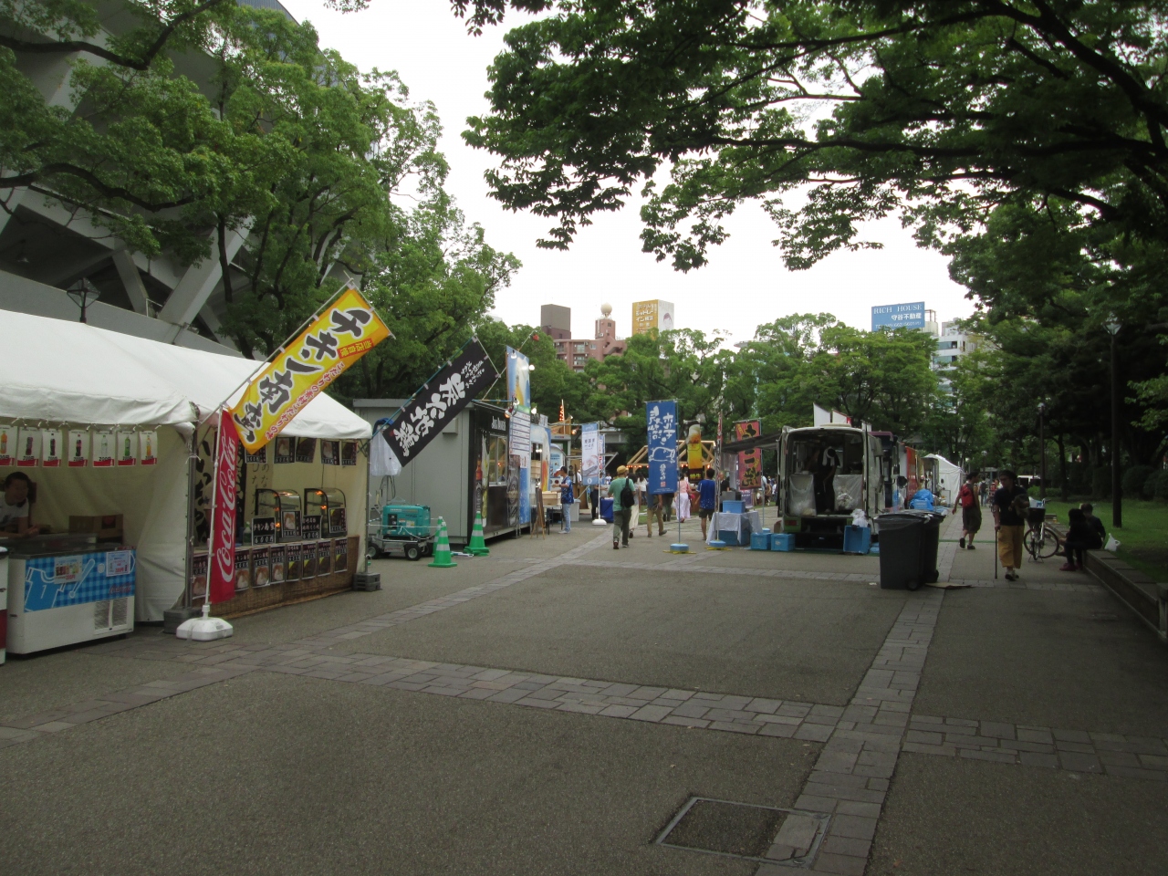 横浜公園で横浜-巨人の公式戦をパブリックビューイングで開催しているためか、公園に臨時の露店が並んでいました。2017年夏の関東地域は日照不足で、夏らしくない日々が続きましたが、こういう光景を見ると実感が湧きました。