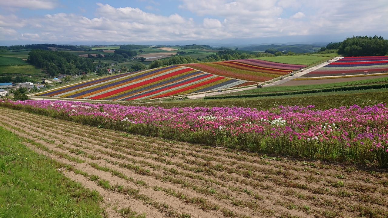 アップダウンのある丘に植えられた色とりどりの花がとても美しかったです。暑い日だったのでトラクターにひかれた車にのって一周しました。ときどき途中で止まってくれて撮影タイムが始まります。万国共通のわかりやすい美しさです。