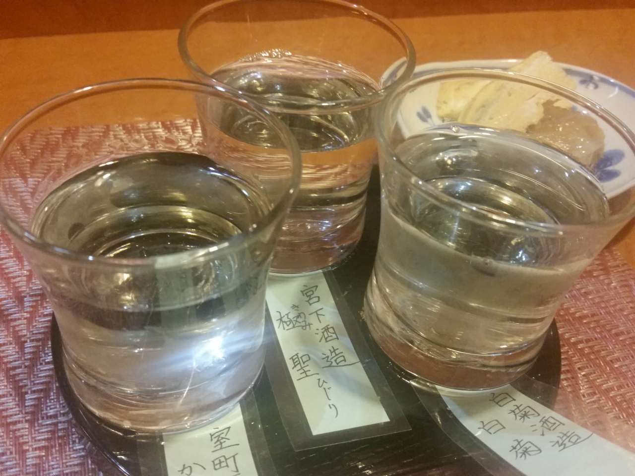 すぐ近くのホテルに滞在していて、ネットで郷土料理を調べたらここがありました。土曜日の夜17時頃に行ったのですが、カウンターに一人。二階では宴会?をしていたようです。一人でも注文できるコースを勧められましたが、そんなにお腹が空いていなかったので、地酒の呑み比べと一人前の刺身、ままかりを頼みました。