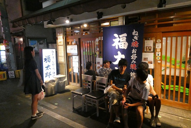店の中に入って、順番待ちリストに書き込もうとしたとき、店の人から言われた言葉が「イエスプリーズ」。生まれて初めて外国人と間違われました。というぐらい、国際的な客層にあふれているのが、大阪・千日前のお好み焼き屋「福太郎」。外で待っていると、聞こえてくるのが中国語、韓国語、それにどこかヨーロッパの言葉なのです。8月とはいえ月曜という平日なのにもかかわらず外人観光客だらけ。30分ほど待ってようやく店に入れました。待っている間に注文していたので、すぐに品が出ます。頼んだのは人気ナンバーワンという豚玉のお好み焼きでした。ホットケーキのような厚く硬い食べ物を想像したのですが、卵を2、3個使っているのか、かなりフワフワな食感。鉄板の工夫で食べていても、焦げることなしに食べられました。ソースの美味しく、ボリュームもほどほどにあり、酒のつまみにしかならないというこちらのイメージとは別物でした。ビールとの相性もよく、これなら広島のお好み焼きと変わらないと思いました。いやあ、とても美味しい食べ物でした。