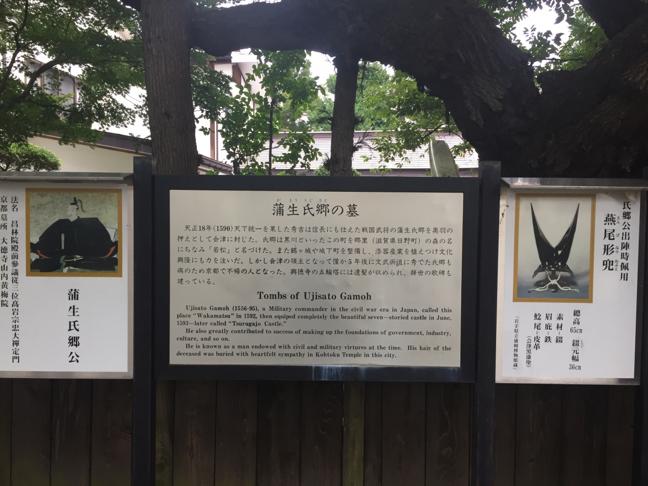 信長・秀吉に必ず登場してくる知名度の高い武将ですが、今ひとつ業績の解りにくい人物です。戦歴を誇る闘将・キリシタン大名・91万石・何故か名古屋山三・出雲の阿国にも登場。40歳で病没したことがピリオドを打てない幕引きだったのかもしれません。ここには遺髪が納められている。