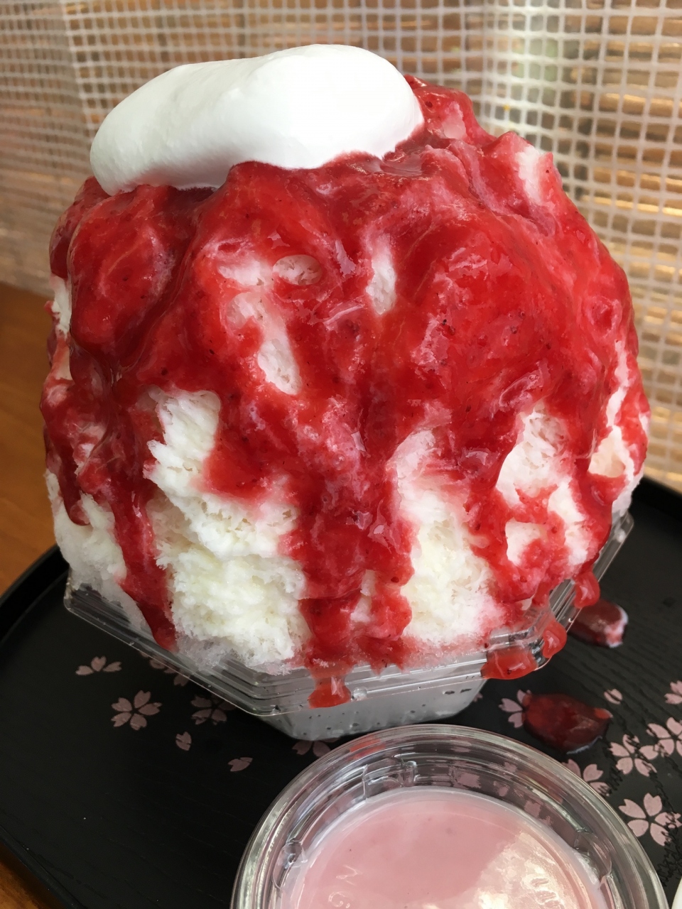 夏場は数時間待ちが当たり前とネットで見ていたので、11時の開店前、10時半くらいに行って整理券を貰ったら11:45くらいにカキ氷を頂けました。