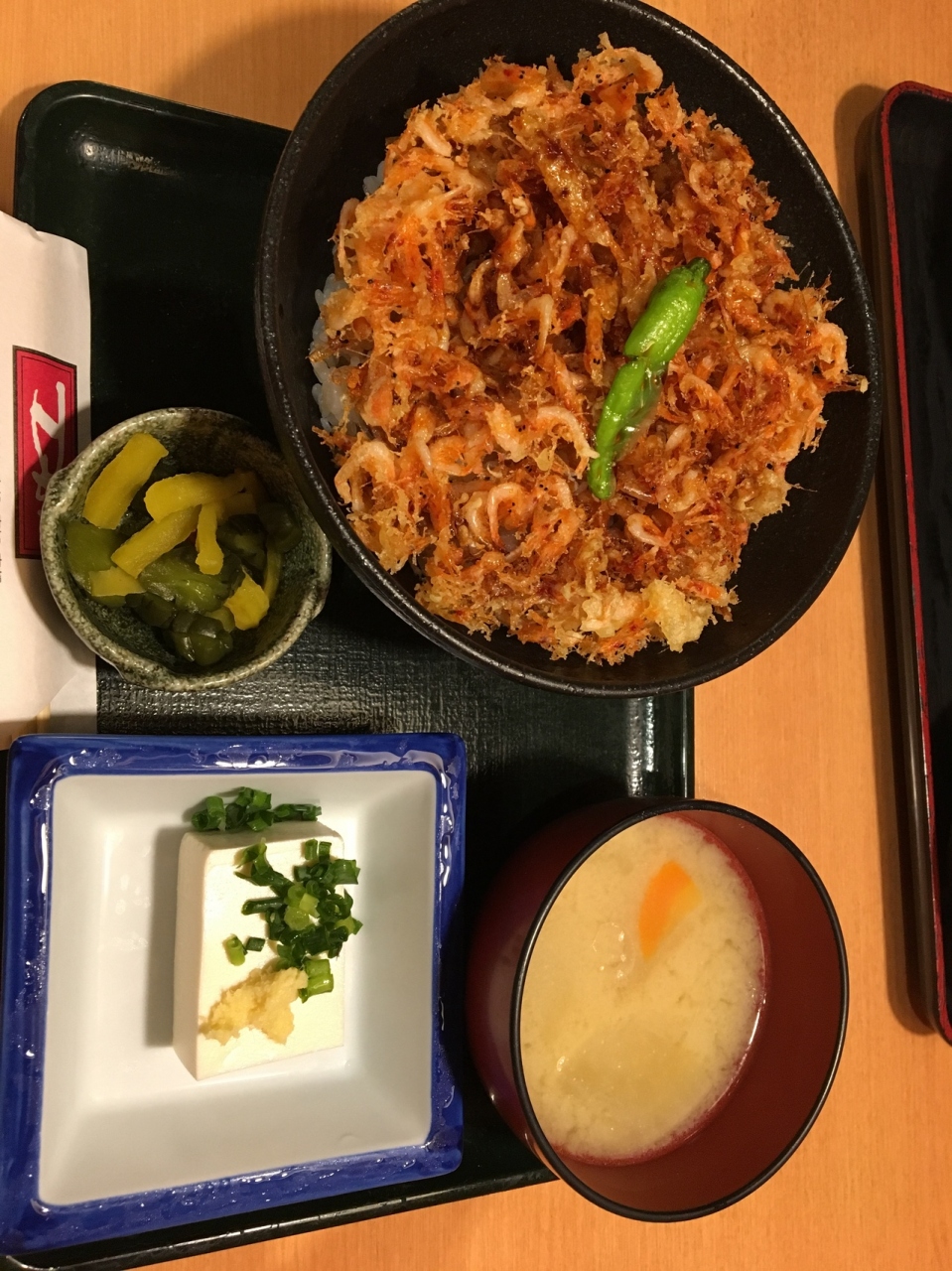 以前静岡に来た時桜エビのかき揚げが食べようと思ったら何と品切れと言われ、マグロカツでお茶を濁した経験がある私 ここでやっと食べられました