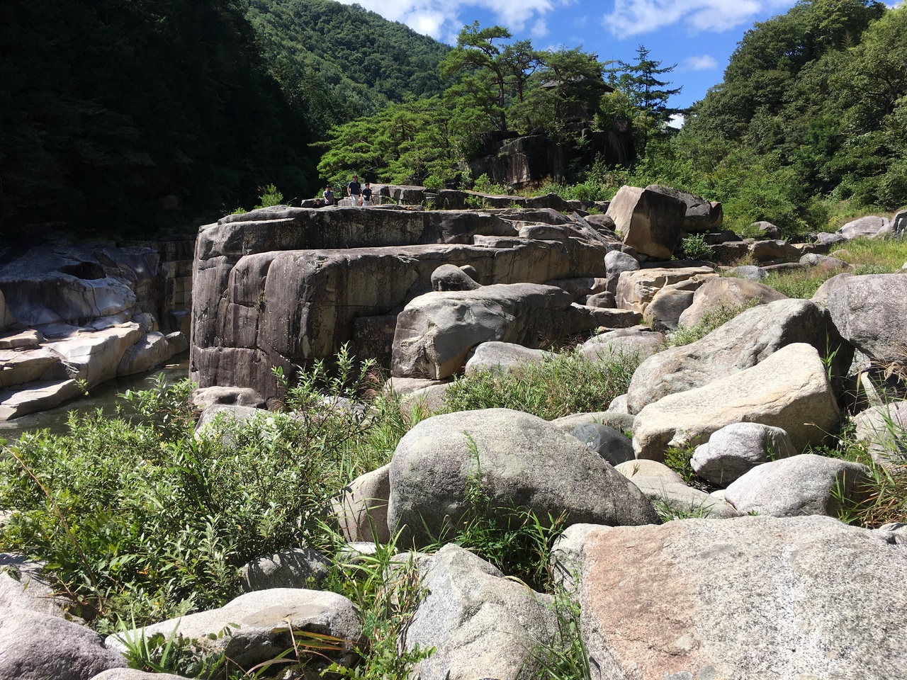 近くの有料の駐車場から向かうと、すぐ近くでした。お寺の展望台から、奇岩が並ぶ様がよく見えましたが、降りる口もあるので行くことにしました。近づくほど、迫力大。先に歩いていた若者達は、ハシゴを登ったりして、石の上に到達していました。