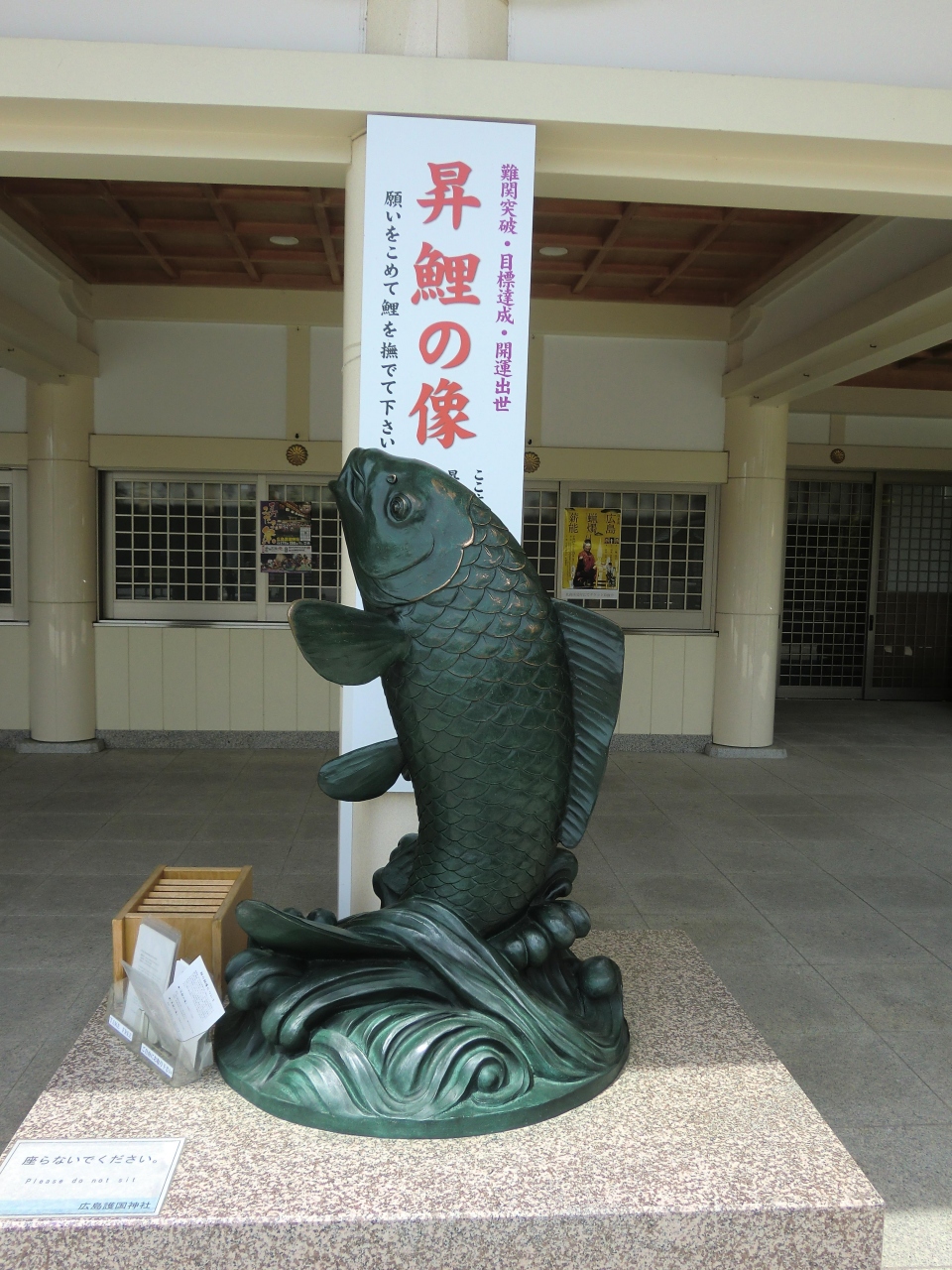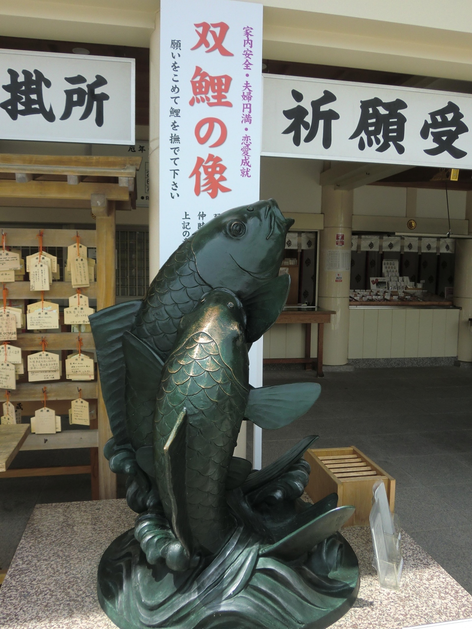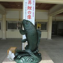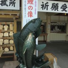 社殿の左右には鯉の像があり、「昇鯉の像」「双鯉の像」と名付けられています。