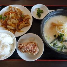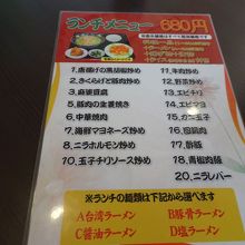 20種類のおかずから1つ選択。更に、鶏から、ラーメン、ご飯、ドリンクが付いて、税抜き680円。ご飯はお替り自由。