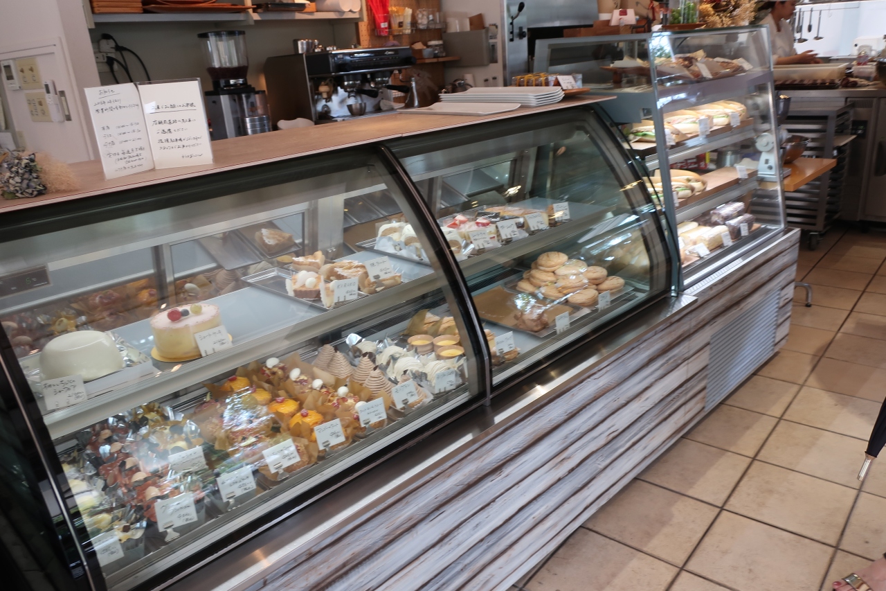 低層マンションの1階に店はあり、コンクリ打ちっぱなしの店内はとてもシンプルで明るい雰囲気。名前通り外にテラス席がありましたが、夏は暑くて誰も座ってませんでした。店内ではカットケーキ、サンドイッチがショーケースに並べられ、目的のカヌレはテーブルに8種類置かれていました。店員さんに聞くとやはりプレーンが一番人気。全種類を買いました。生ケーキと違い日持ちもある程度するので神戸土産に良い商品です。