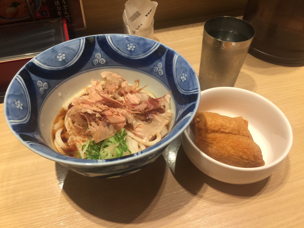 うどんにご飯かいなり寿司が付いて500円です。