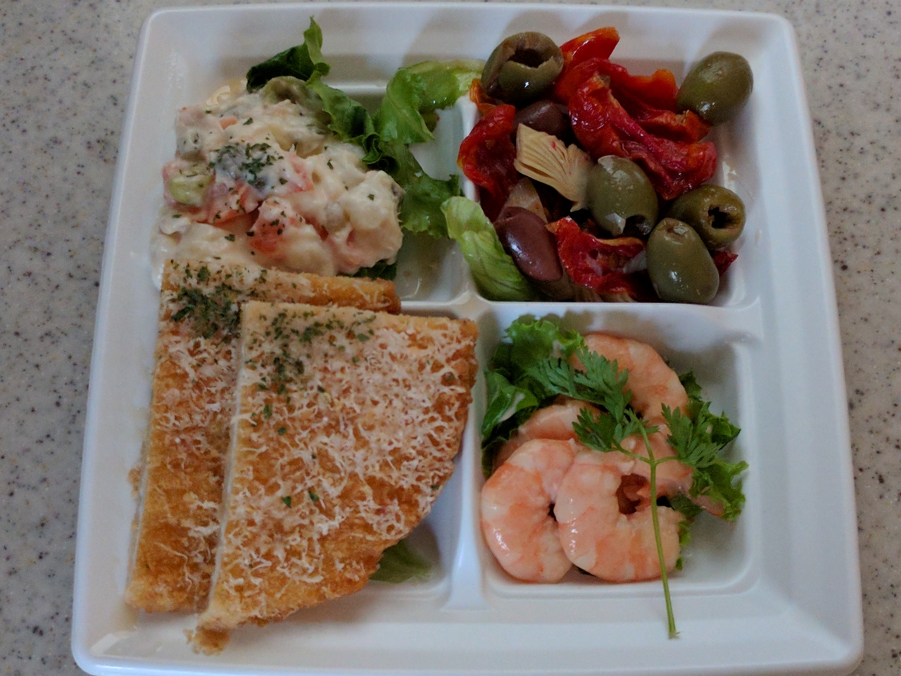 『チキンカツ』も美味しかったですし、ドライトマトとオリーブはワインに合う一品ですね。