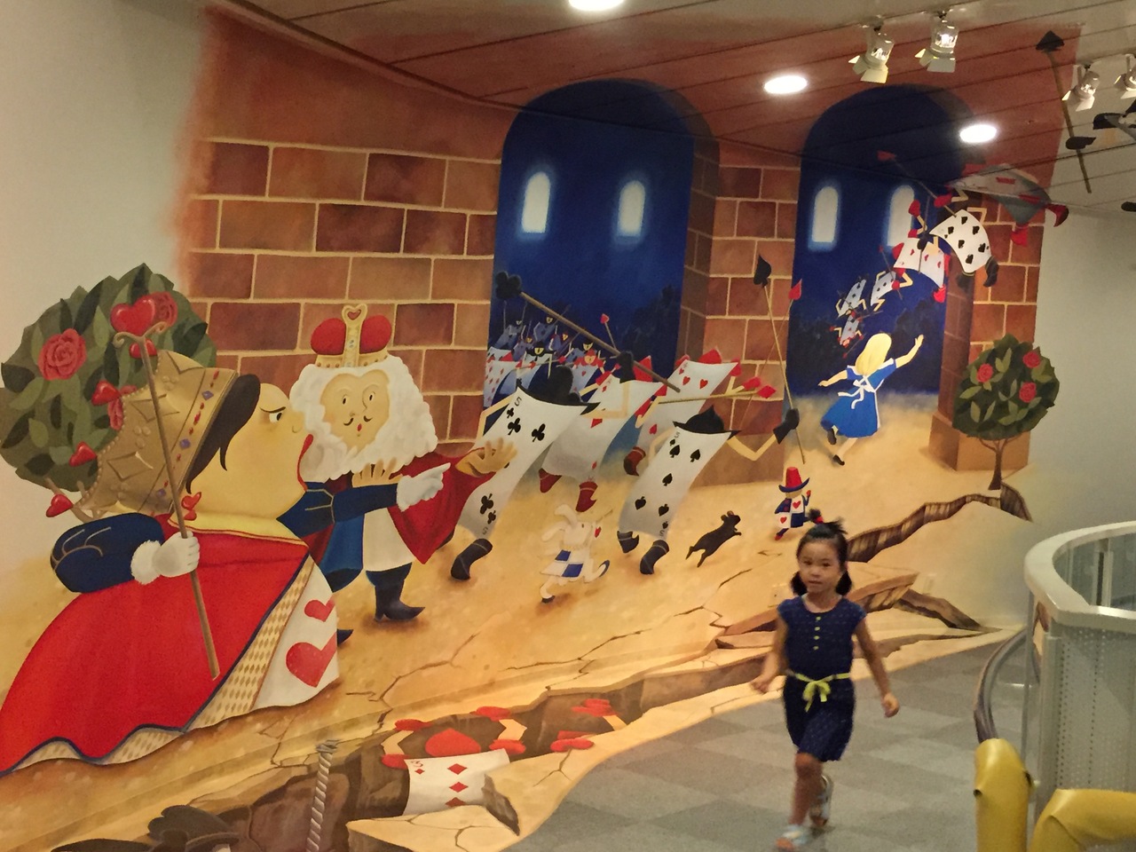 近代文学館と同じ建物にあり、共通入場券を買って入館。子供達の嬌声が響く1階を避けてエレベーターで3階に行く。そこから螺旋状になったスロープの壁面に描かれた作品を楽しみながら巡ると、中央部の展示に入れる。そこはジャングルジムのようになっていて、子供の格好の遊び場である。