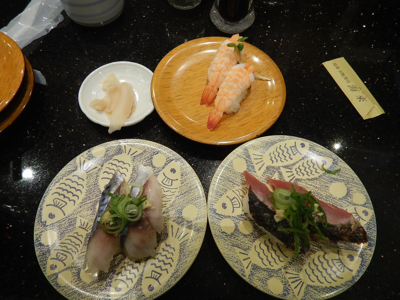 JALのサクララウンジが工事中ということで、空港内の店舗で使える喫茶・食事券を1000円分もらった。さてコーヒーでも飲むかと思ったが、回転寿司があったので、ここで食べることにした。エビ、イカ、サーモンなど5皿ほど食べ、1000円以内に収めた。味の方はかなりいい方だろう。