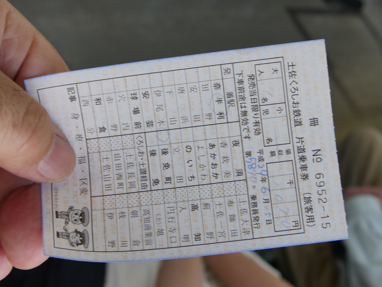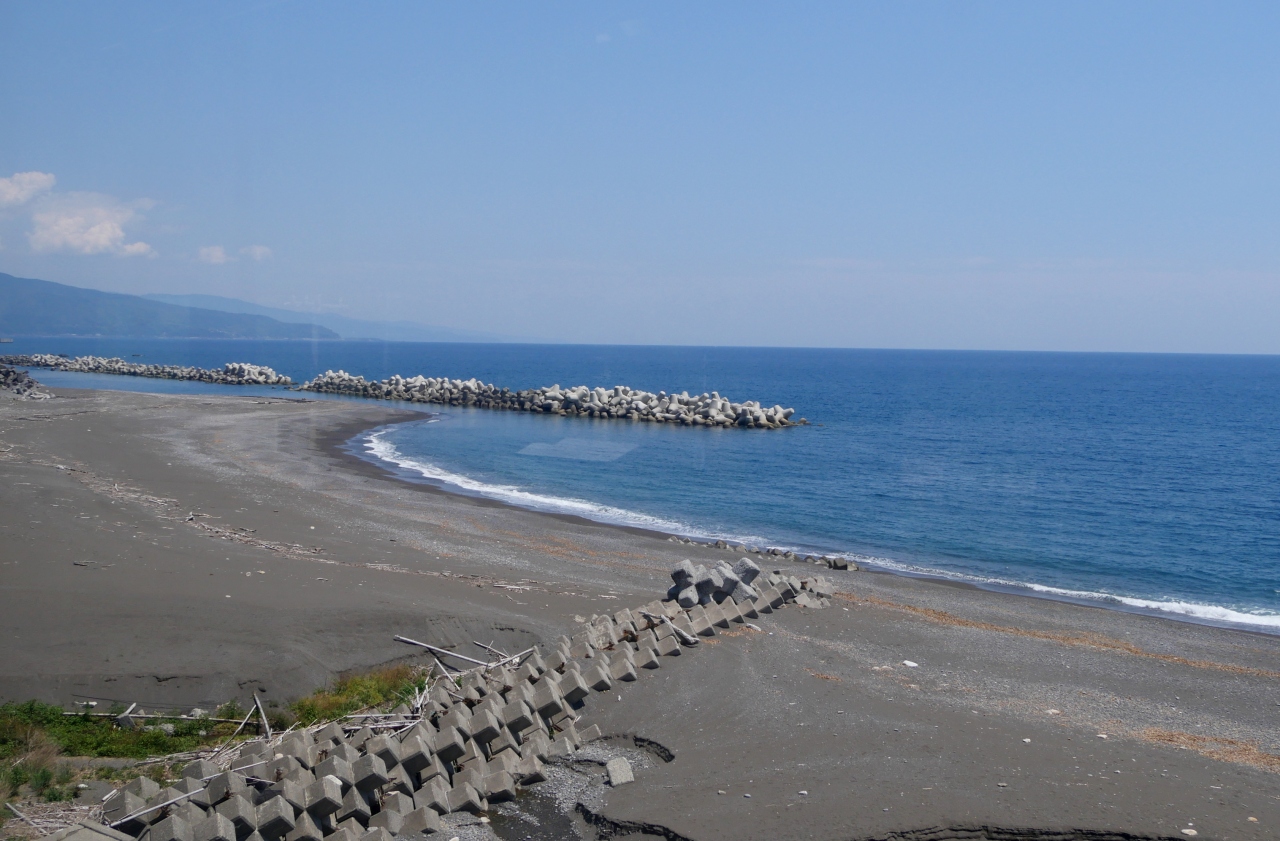 2014年2月に室戸岬までのドライブでかいまみた,土佐くろしお鉄道に乗車したくて,今回奈半利行を決めた.正式な名称は阿佐線だが,愛称の「ごめんなはり線」でよばれている.やなせたかしのマスコットキャラクターが各駅を飾る.国鉄時代に着工されたがその後凍結.やっと第三セクターで2002年に開通した.新しい線なので近代的であまり面白味はないが,太平洋に沿って走るのでとても海がきれいだった.ここでは往復を紹介.帰りは快速で,阪神タイガース塗装の列車だった.久しぶりにローカル線を楽しんだ.ローカル線の雰囲気に浸り,かつ海がきれいなのがうれしい