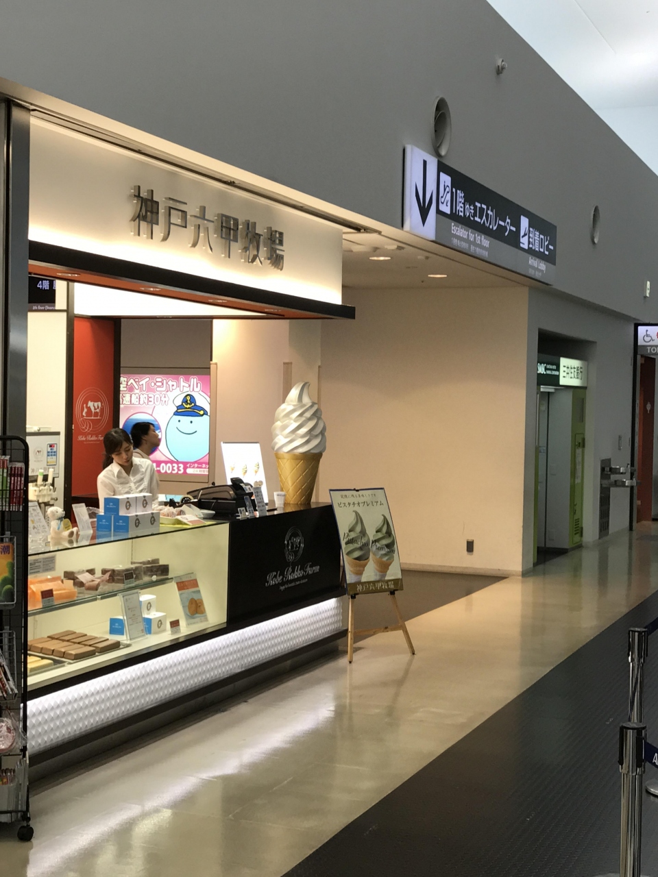 神戸空港のターミナルビル2階の出発ロビーにある店舗です。なんといってもソフトクリームがおすすめです。濃厚でなめらかなおいしさで、飛行機の待ち時間に利用したのですが、夢中になって食べてしまいました。他にもプリンなどが売られていて、お土産を買うのにも最適です。