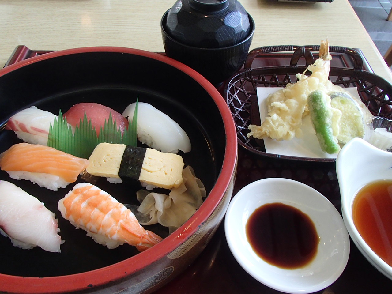 ランチに行きました。にぎりずしと天麩羅のセット。1134円税込。平日の1時頃だったので待たずに入れました。天麩羅がサクサクに揚っていてとても美味しく、にぎりずしととても合ってました。食べ終わった後も、少しゆっくりしてましたが、お店の対応は良く良い時間ふが過ごせました。