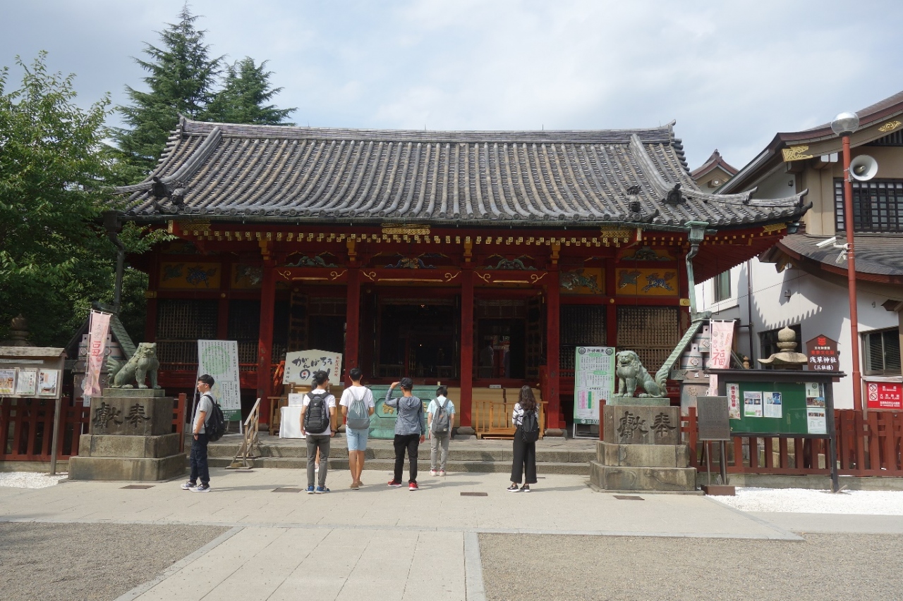 浅草寺の本堂に向かって右の方向へ歩いて行くと石造りの鳥居が見えてきます。そちらをくぐると浅草神社(三社様)が有ります。浅草寺が大混雑なのに比べてこちらは少し落ち着いています。それでもお堂は重要文化財に指定されている古いもので見応えが有りました。