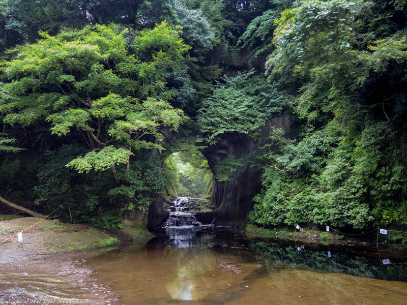 駐車場からすぐに濃溝の滝を上の遊歩道から見ることが出来ます。