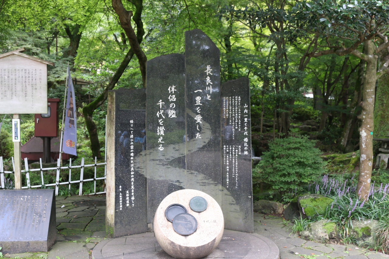 ロープウェイの山麓駅の下にあり、大昔路面電車に乗って訪れたことがあります、10年程前に廃線になり残念ですが、一豊婚礼の碑が新たに作られていました。 国営放送の大河ドラマ放映の頃作られたのでしょうか? 豊臣会社の下っ端社員で礎を築き明治まで存続した数少ない豊臣社員。
