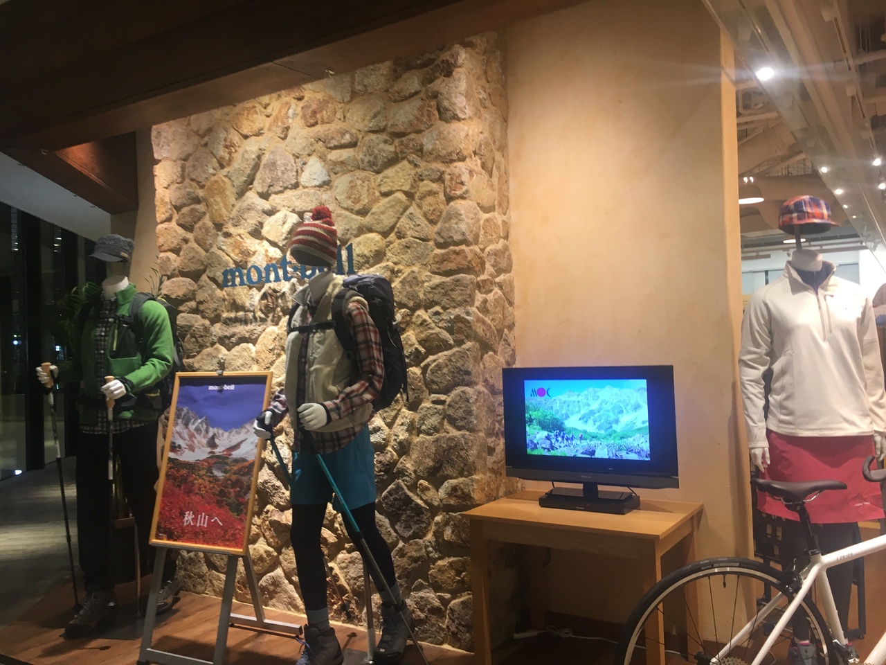 グランフロント南館にあるごく普通のモンベル。店舗の広さはどちらかといえば狭めかもしれません。衣料などは普通にありますが、テント等アウトドア用品の展示は他店舗のモンベルに比べてほとんどないように感じました。