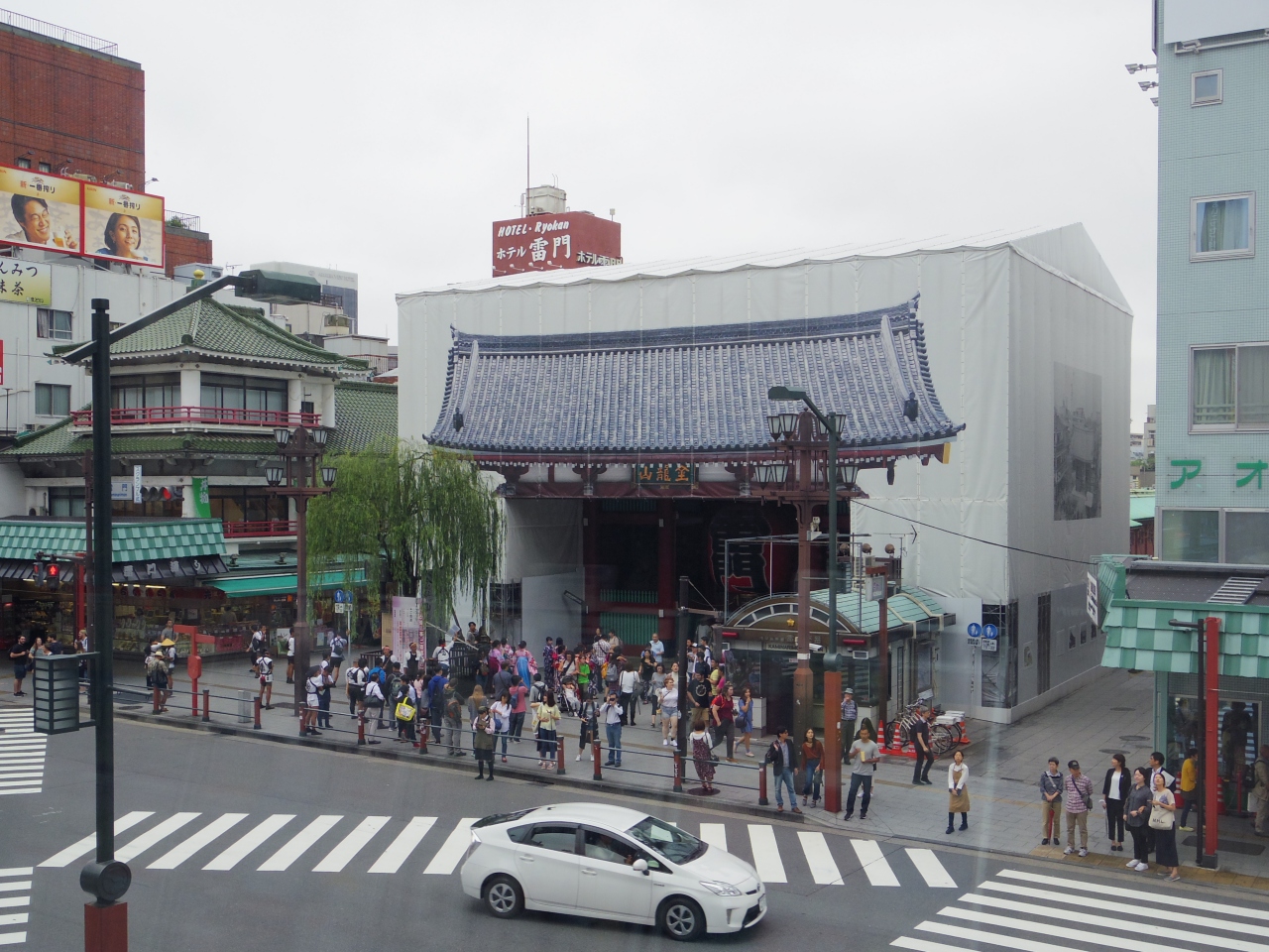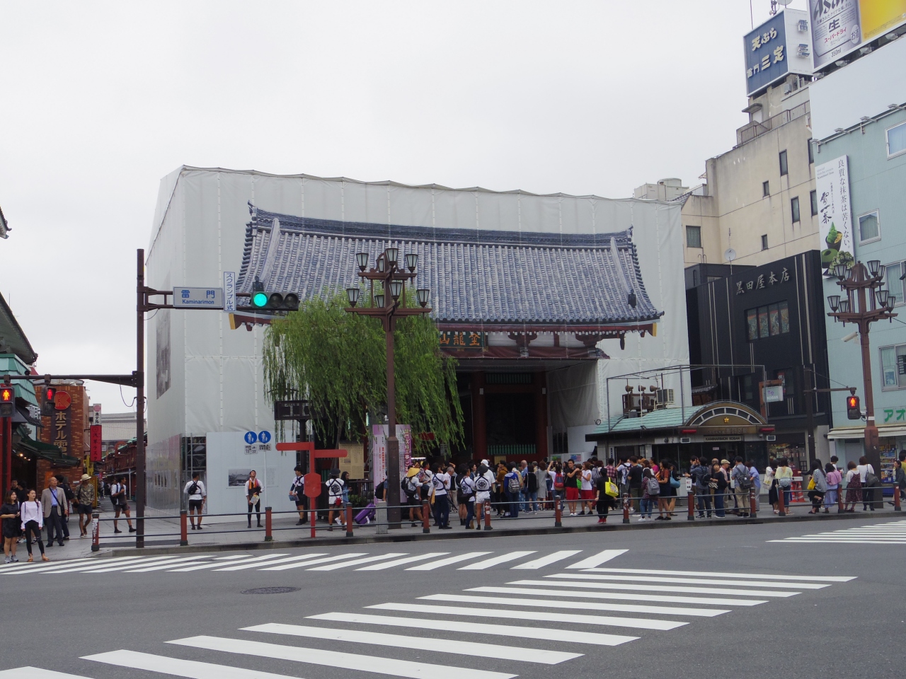 現在は工事中のようで、覆われていますが、提灯はそのままで、記念撮影の人でいっぱいでした。
