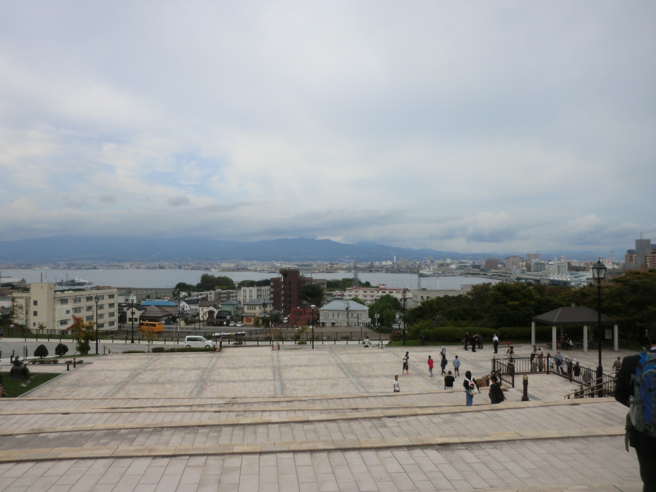 旧イギリス領事館見学後に、ここへ到着です。眼下に函館湾を眺めることができるのが最高です。この一体は日本が開国したときは、函館の中心地だったそうです。箱館奉行所もここに置かれていたと聞きました。天気のよい日には、ピクニックしたくなる公園です。