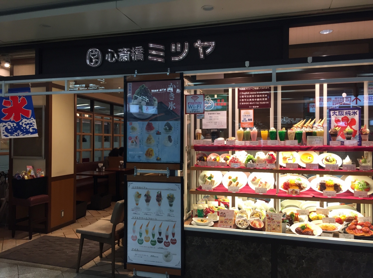 梅田駅の近く阪急3番街にある夜遅くまで営業している喫茶店です。